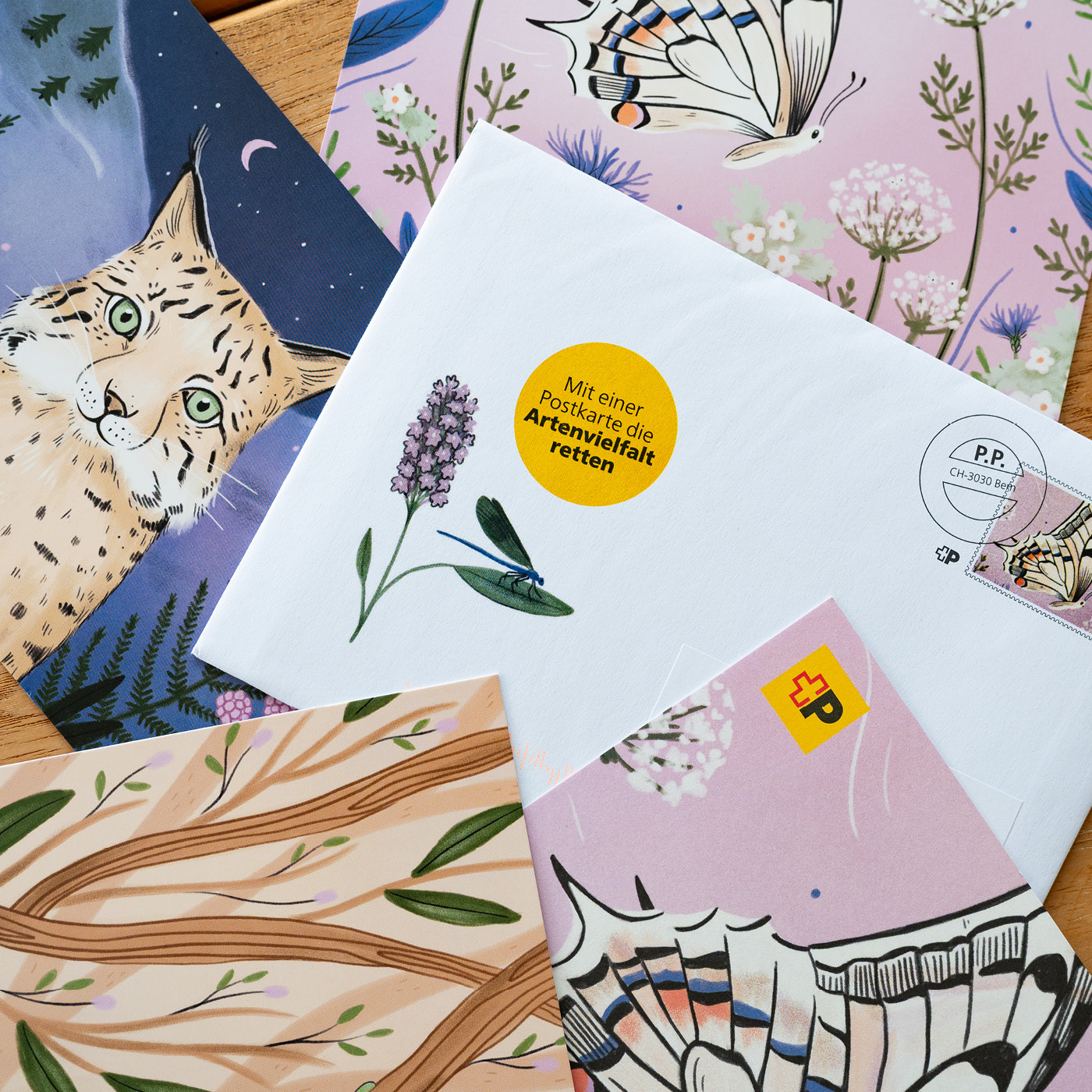 Das kostenlose und vorfrankierte Postkartenset war in limitierter Auflage bei der Schweizerischen Post erhältlich. Pro verschickte Karte wurde 1 CHF an Pro Natura gespendet 🌎💚